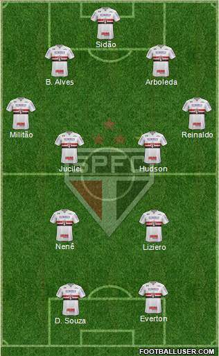 Hoje esta com cara que o Aguirre irá entrar com 3 volantes pois o Marcos Guilherme não joga mais pelo SPFC, o Valdivia não esta bem tecnicamente, e o Liziero entrou muito bem contra o Santos, ou seja, tenho certeza que o Aguirre vai montar um meio de campo com Hudson e Jucilei que jogaram muito contra o Santos, vai colocar o Liziero centralizado e vai abrir o Nenê na ponta direita. Quando ele faz isso perdemos um grande jogador.