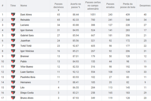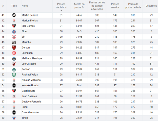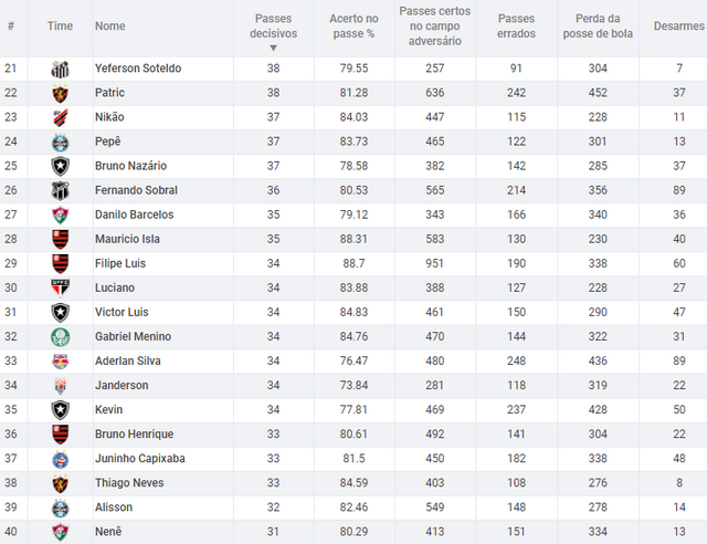 obs: passes decisivos = jogadas criadas para os finalizadores, seja com passes, cruzamentos ou lançamentos.