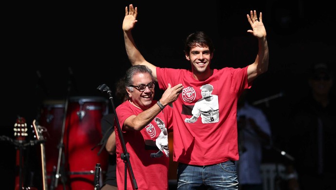 Aidar e Kaká durante apresentação do meia na manhã deste domingo (Foto: Marcos Ribolli / Globoesporte.com)