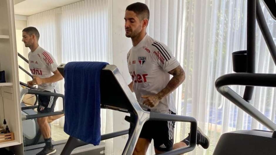 Pato postou em sua conta no Instagram e em seu Twitter oficial registros de seu treino físico em uma esteira em sua casa. O jogador, que aparece nas imagens com o uniforme de treinamento do Tricolor, incluiu a seguinte legenda em sua publicação neste primeiro dia de trabalhos fora do CT da Barra Funda.