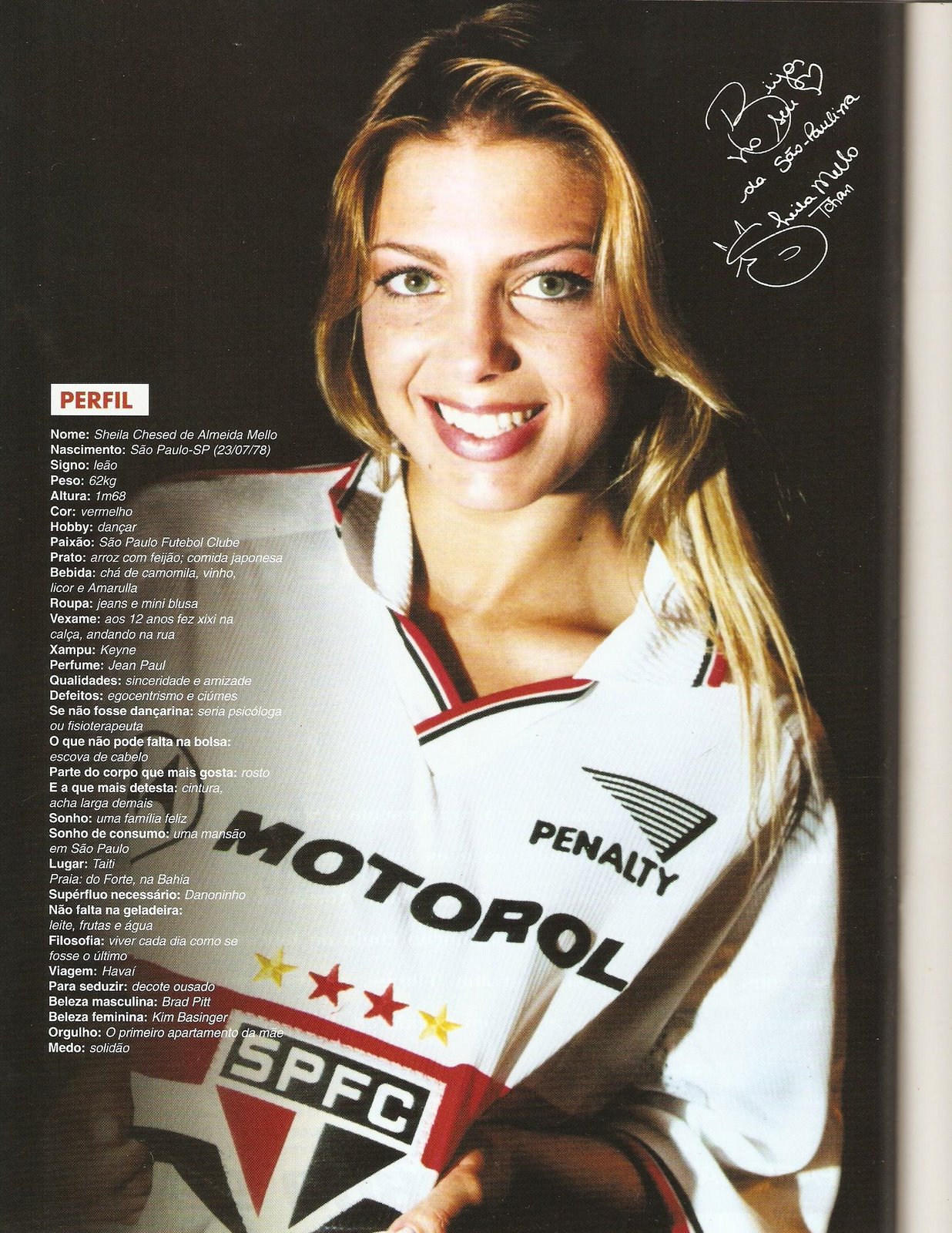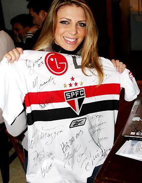 A eterna 'Loira do Tchan' é mais uma das beldades brasileiras que torce pelo São Paulo. Atualmente com 42 anos, Sheila ficou conhecida em 1998 ao se tornar dançarina do grupo É o Tchan. Em 2009, a famosa participou do reality show 'A Fazenda', e terminou em 7° lugar.