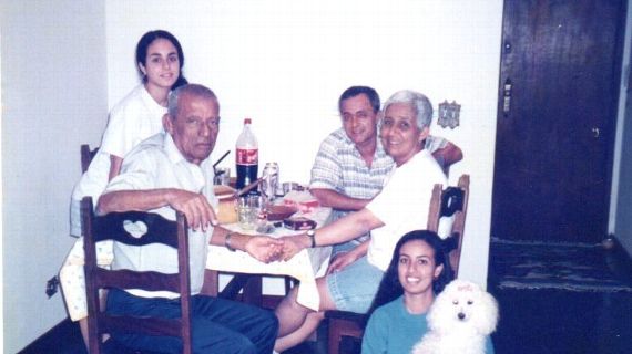Zizinho em um almoço de domingo com a filha Kátia e as netas Simone e Suzana, em Niterói Acervo da família de Zizinho