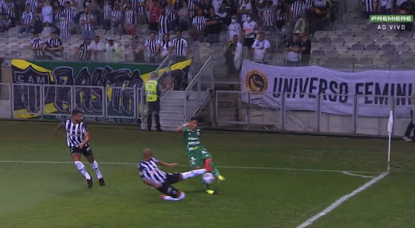"Cartão amarelo, Cléber. A gente vê que realmente o Reinaldo chegou atrasado, mas tinha a intenção de disputar a bola. Olhando na câmera lenta, realmente parece que o Reinaldo vai agredir, mas ele quer disputar a bola e chegou atrasado. Para mim, cartão amarelo", disse Sálvio.