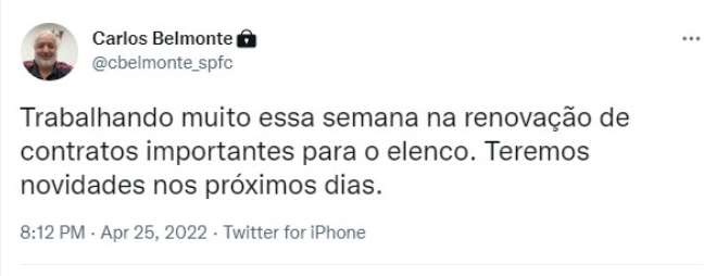 Em seu perfil no Twitter, o executivo indicou os próximos passos da diretoria são-paulina.
