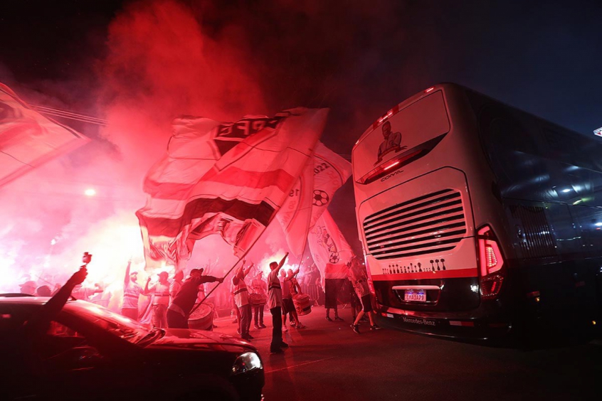 A recepção dos ônibus que trouxeram as delegações mesclaram provocações direcionadas à equipe alviverde, com gritos de "sem Mundial", e festa e pirotecnia com a chegada do Tricolor.