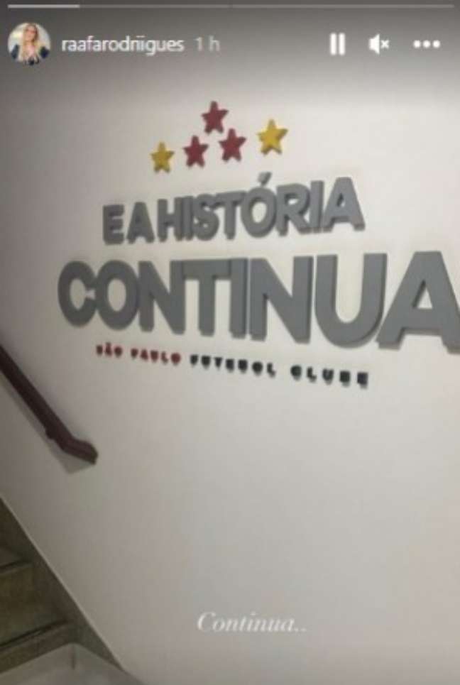 Nesta sexta-feira, a namorada do camisa 26 são-paulino, Rafaela Rodrigues, postou na ferramenta stories do Instagram uma foto de uma das paredes do CT da Barra Funda com o escrito: "E a história continua". Além da foto, ela reforçou a mensagem escrevendo "Continua.." na publicação.