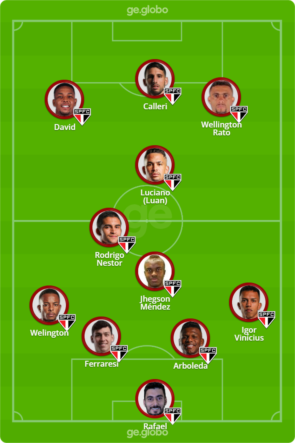 Relembre abaixo a escalação do vice-campeonato do Paulistão: Jandrei; Rafinha, Diego Costa, Léo e Welington (Arboleda); Pablo Maia, Rodrigo Nestor (Nikão), Igor Gomes e Alisson (Patrick); Eder (Luciano) e Calleri.