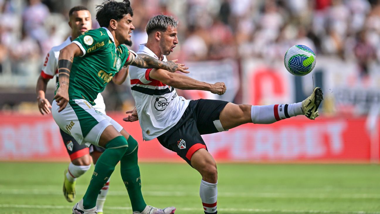 O título da Supercopa do Brasil, conquistado no último domingo (4) , em Belo Horizonte, confirmou o São Paulo como a pedra no sapato do Palmeiras. Ao longo da história, foram 22 confrontos eliminatórios e o Tricolor levou a melhor em 17 deles. Nas últimas duas edições da Copa do Brasil , o São Paulo eliminou o Palmeiras nas oitavas (2022) e quartas de final (2023). Durante sua participação no SportsCenter , desta segunda-feira (5), o volante Pablo Maia acredita que os últimos duelos deixaram os jogadores do Verdão "receosos" em enfrentar o Tricolor. "Acho que a gente sabe jogar contra eles. A equipe deles tem muita qualidade, também tem uma intensidade muito forte. Acho que sempre que vamos jogar contra, eles têm muita dificuldade. A gente consegue bater de frente com eles. Eles têm um pouco de receio de jogar contra nós, porque toda vez é um jogo apertado, amarrado. São muitos confrontos, então um já consegue entender o jogo do outro. Isso é uma dificuldade a mais", analisou Pablo Maia.