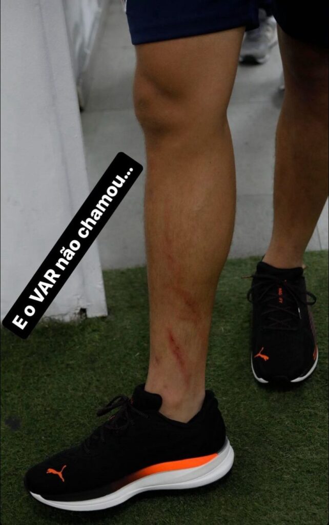 O presidente do São Paulo, Julio Casares, continua expressando publicamente sua insatisfação com a arbitragem do clássico contra o Palmeiras, no último domingo, no Morumbi, pelo Campeonato Paulista. Nesta segunda-feira, o mandatário tricolor compartilhou uma foto da perna de Pablo Maia após sofrer uma dura entrada de Richard Ríos, passível de expulsão. O lance ocorreu no primeiro tempo e resultou no gol do São Paulo. O árbitro Matheus Candançan deu apenas cartão amarelo para Richard Ríos pela falta em Pablo Maia, e o VAR não recomendou a revisão da jogada ao juiz de campo. A expulsão de Richard Ríos no primeiro tempo, com o São Paulo em vantagem no placar, teria um impacto óbvio no clássico, e facilitaria bastante a vida do time comandado por Thiago Carpini. O presidente do São Paulo, Julio Casares, manifestou sua indignação com o VAR por não revisar o lance.