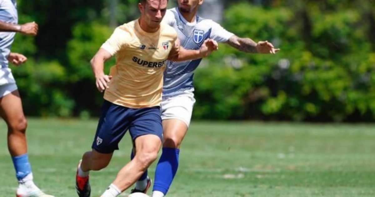 São Paulo 10 a 0 em jogo-treino Neste sábado, o São Paulo fez um jogo treino contra o Atlético de Mogi, da quinta divisão estadual. Foram quatro tempos de 30 minutos e, no fim, goleada de 10 a 0. O apronto contou com os jogadores que estavam defendendo as suas seleções na data-Fifa: Rafael e Pablo Maia (Seleção Brasileira), Arboleda (Equador), Ferraresi (Venezuela), Bobadilla (Paraguai) e James Rodríguez (Colômbia). Assim, foi o primeiro trabalho em que o técnico Thiago Carpini contou com elenco completo.