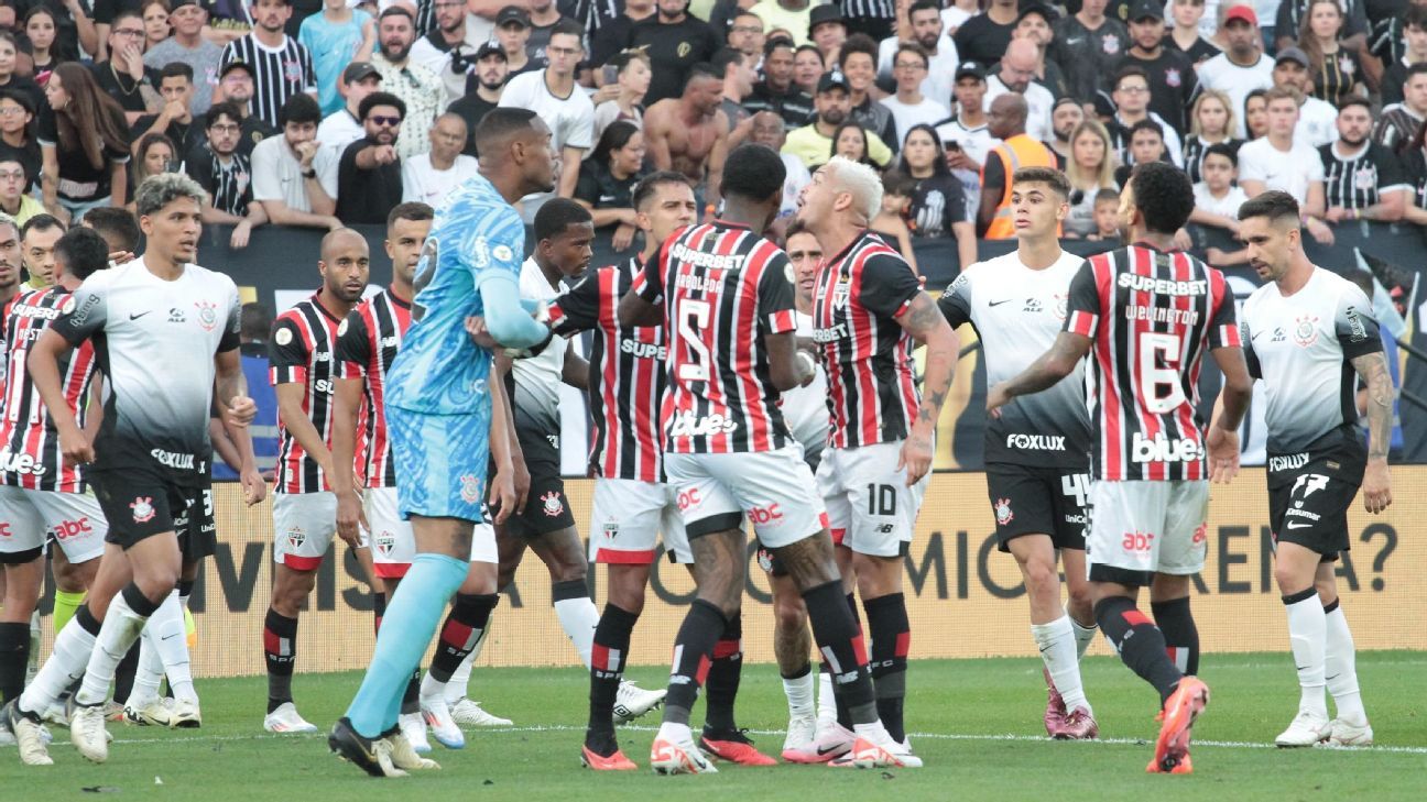Corinthians e São Paulo empataram em 2 a 2, neste domingo (16), na Neo Química Arena, em um Majestoso eletrizante pela 9ª rodada do Brasileirão. Em tarde inspirada, o goleiro Carlos Miguel fez "milagre" e salvou o Timão, que ainda teve Caetano expulso no 2º tempo. Lucas e Cacá (contra) marcaram para o time do Morumbis, enquanto Igor Coronado e Gustavo Mosquito anotaram dois golaços para a equipe alvinegra. O resultado alivia um pouco a crise do Corinthians, apesar de não afastá-la de vez da zona de rebaixamento. Por outro lado, o São Paulo perdeu a chance de entrar no G-4, mas segue invicto sob o comando de Luís Zubeldía. Agora são oito vitórias e quatro empates com o técnico argentino.
