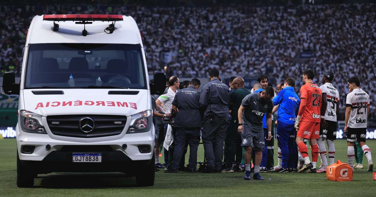 O lance, que provocou apreensão entre jogadores das duas equipes, aconteceu na segunda etapa do clássico. Após disputa de bola no alto com Estêvão, do Palmeiras, Patryck bateu a cabeça no chão e caiu desacordado - o momento pode ser visto no vídeo acima. O jogador recebeu atendimento imediato e deixou o estádio de ambulância. Em seu lugar, entrou o zagueiro Alan Franco.