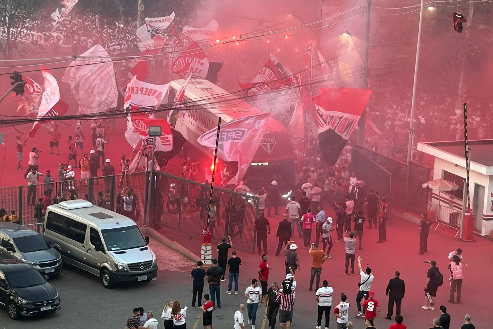 Nesta quinta-feira, a torcida do São Paulo literalmente conduziu o ônibus que carregava a delegação do clube à porta de entrada do Morumbis, que logo recebe a partida diante do Nacional-URU, válida pela volta das oitavas de final da Libertadores. Sob festa e muito apoio da torcida são-paulina, o ônibus chegou ao entorno do Morumbis rodeado de sinalizadores e fumaça vermelha, que tomou conta do portão principal do estádio. Membros de torcidas uniformizadas do time tremulavam as bandeiras e entoavam os principais cantos de apoio. Nas intermediações do Morumbis, também houve rojões e fogos de artifício. Até mesmo o machucado Alisson apareceu e cumprimentou os torcedores após a festa.