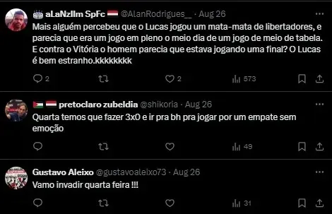Ao menos, pela Copa do Brasil, as equipes se enfrentaram apenas em 2 jogos, pela semifinal, na edição de 2000. No jogo de ida, o Clube da Fé venceu por 3 a 0 no Morumbis, na volta, as equipes empataram em 3 a 3 no Mineirão. Além do retrospecto geral ser favorável ao Galo , outro fator negativo para o São Paulo é a sequência de 7 jogos sem vencer o Atlético , sendo 4 derrotas e 3 empates, confira: 11/07/24 – Atlético-MG 2 x 1 São Paulo – Arena MRV – Brasileirão 2024 02/12/23 – Atlético-MG 2 x 1 São Paulo – Mineirão – Brasileirão 2023 06/08/23 – São Paulo 0 x 2 Atlético-MG – Morumbis – Brasileirão 2023 01/11/22 – São Paulo 2 x 2 Atlético-MG – Morumbis – Brasileirão 2022 10/07/22 – Atlético-MG 0 x 0 São Paulo – Mineirão – Brasileirão 2022 25/09/21 – São Paulo 0 x 0 Atlético-MG – Morumbis – Brasileirão 2021 13/06/21 – Atlético-MG 1 x 0 São Paulo – Mineirão – Brasileirão 2021