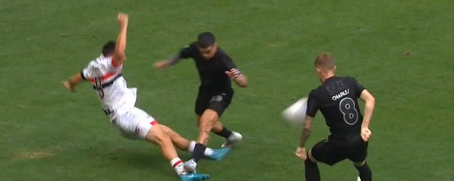 O VAR entrou em ação e chamou o árbitro Rafael Rodrigo Klein para analisar um pisão de Fagner em Calleri. Após revisão, foi marcada a penalidade máxima a favor do São Paulo e o segundo cartão amarelo, resultando na expulsão do lateral-direito do Corinthians. Para a comentarista de arbitragem Renata Ruel, as decisões foram corretas, destacando a intensidade do pisão e a temeridade do lance.