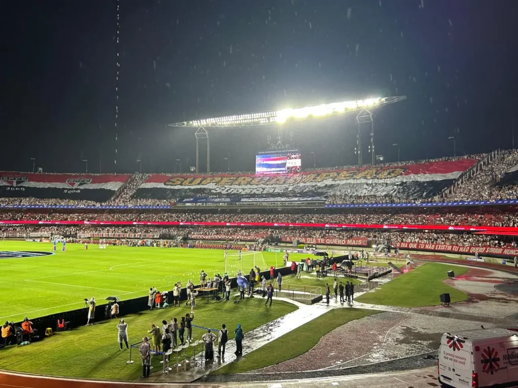 O tão aguardado Majestoso estava programado para começar às 18h30 (horário de Brasília), mas o início do jogo foi atrasado em uma hora devido às intensas chuvas que atingiram a capital. No entanto, o espírito da torcida estava em alta, demonstrando que, come chuva ou sol, o amor pelo São Paulo é inabalável.