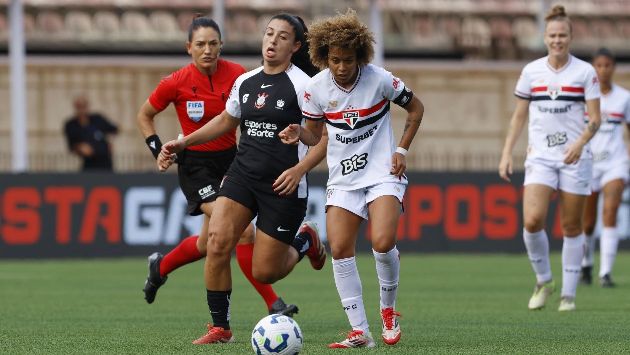 O São Paulo lutou com unhas e dentes, mas não foi suficiente! Neste domingo (31), o Tricolor empatou em 2 a 2 com o Corinthians no Estádio Canindé, pela semifinal do Brasileirão Feminino 2025, com 7.808 torcedores vibrando nas arquibancadas. Apesar da entrega das Guerreiras, que buscaram o empate com gols de Aline Milene e Isa Guimarães, o Corinthians avançou à sua nona final desde 2016, após vencer o primeiro jogo por 2 a 0. O jogo começou quente, com chances dos dois lados. Mariza abriu o placar para as Brabas aos 26 minutos, mas Aline Milene respondeu aos 35, empatando com assistência de Duda Serrana. Andressa Alves recolocou o Corinthians na frente aos 41, e a goleira Nicole brilhou ao defender um pênalti de Bruna Calderan. No segundo tempo, Isa Guimarães, com um gol cara a cara aos 17, incendiou a torcida tricolor, mas o empate não bastou para reverter a desvantagem. Com Thiago Viana no comando, o São Paulo, que teve mais posse, pecou nas finalizações. Mesmo com a eliminação, a garra de Carlinha, Bia Menezes e cia. deixa a Torcida Tricolor orgulhosa. Agora, o foco é o Brasileirão masculino contra o Botafogo (14/9) e a Libertadores contra a LDU (18/9). Será que o Tricolor vai canalizar essa raça para os próximos desafios?