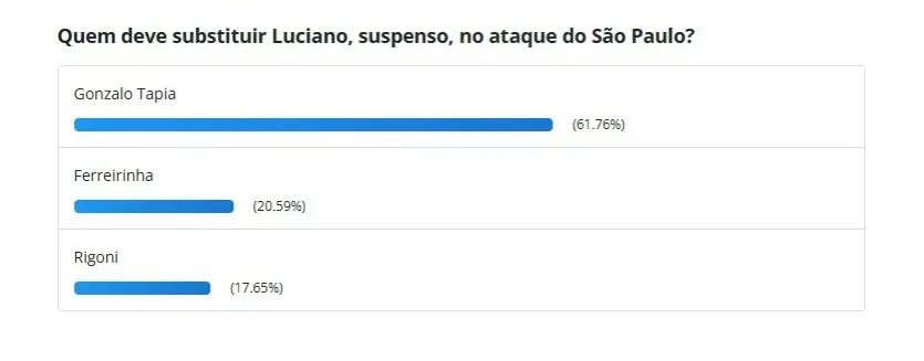 Com a possibilidade de Luciano fora dos gramados, a torcida já manifestou sua preferência para o jogador que deve entrar em seu lugar. Em uma pesquisa realizada pela Gazeta Esportiva, Gonzalo Tapia foi o escolhido pela maioria dos torcedores, obtendo 61,76% dos votos. As outras opções indicadas foram Ferreirinha e Rigoni, que receberam respectivamente 20,59% e 17,65% dos votos, com este último não conseguindo conquistar o apoio da torcida.