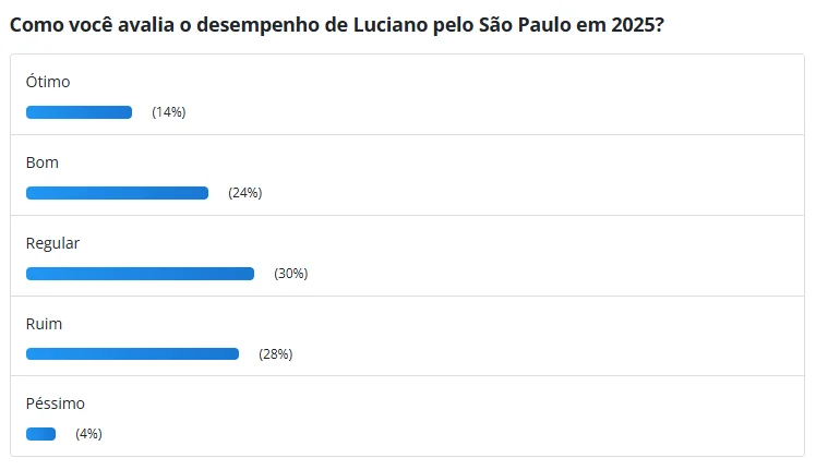 Uma enquete realizada pela Gazeta Esportiva refletiu a divisão de opiniões entre os torcedores sobre a temporada de Luciano. A maioria optou pela avaliação "regular", que recebeu 30% dos votos. Seguindo essa opção, 28% consideraram sua performance "ruim", enquanto 24% a classificaram como "boa". As avaliações mais extremas foram menos populares: apenas 14% deram notas de "ótima", e apenas 4% a consideraram "péssima".
