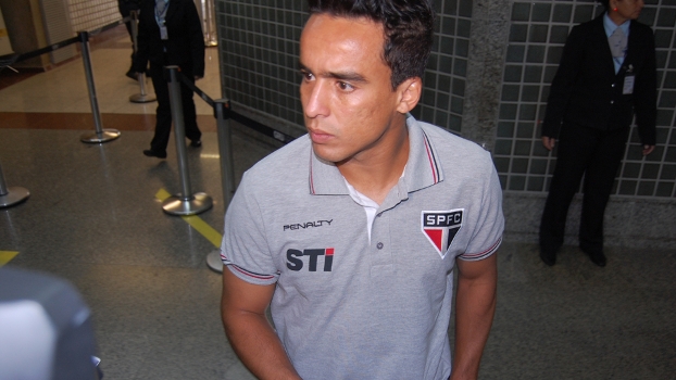 Jadson, meia do São Paulo, durante o embarque em Guarulhos (FOTO: Paulo Silva Jr./ESPN.com.br)