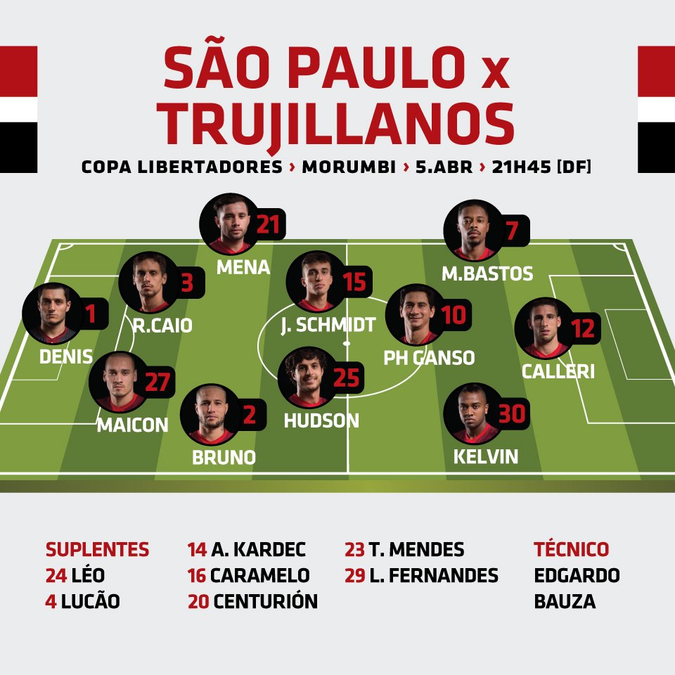 Escalação Oficial: São Paulo x Trujillanos