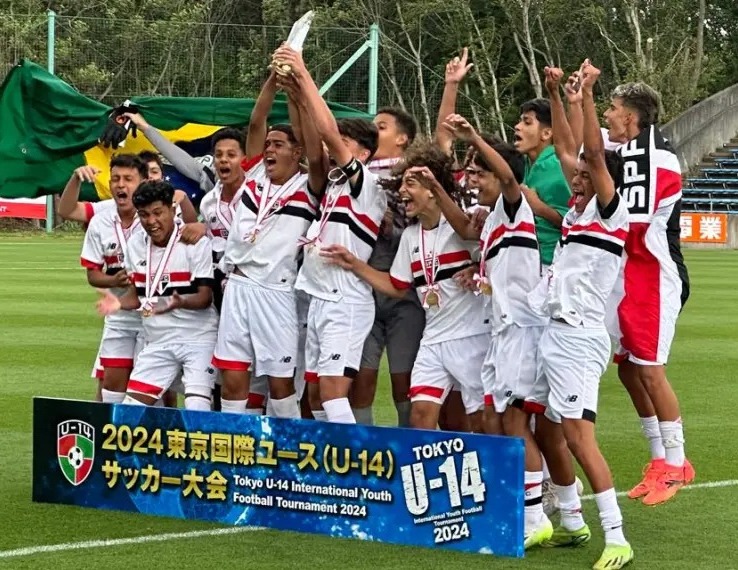 Nesta segunda-feira, no Complexo Esportivo J-League, em Fukushima (JAP), o São Paulo bateu o Miyagi-JAP, nos pênaltis, por 5 a 4, após empate em 1 a 1 no tempo regulamentar. Com o resultado, o Tricolor Paulista sagrou-se campeão do Tokyo International Youth Tournament sub-14 de maneira invicta. A competição reuniu 12 equipes, que foram divididas em quatro grupos com três participantes cada. O São Paulo fez parte da chave B na primeira fase, juntamente com Tokyo Verdy e Prefeitura de Iwate. Nesta fase, o clube paulista venceu as duas partidas, goleando a Prefeitura Iwate, por 5 a 1, e fazendo 3 a 0 no Tokyo Verdy.