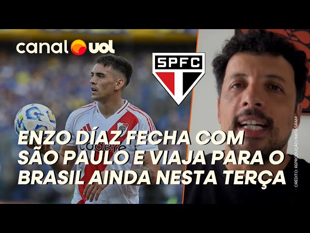 O São Paulo confirmou a contratação do lateral esquerdo Enzo Díaz, que vem do River Plate, da Argentina. A informação foi divulgada pelo colunista André Hernan do programa De Primeira. O apoiante já fez um aperto de mão e o jogador está a caminho do Brasil. Embora o horário do voo não tenha sido especificado, indicaram que a chegada está prevista para a tarde de hoje. Caso ele não embarque, é provável que esteja a caminho do aeroporto na Argentina.