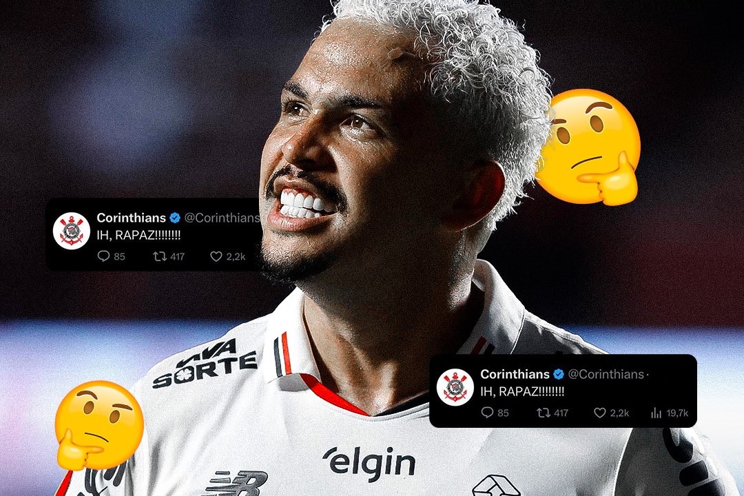 Durante a final da Copa, o Corinthians havia feito uma publicação enigmática no X (antigo Twitter), mas rapidamente a retirou do ar. Para revidar, o São Paulo recuperou o post deletado e o compartilhou junto com uma imagem do atacante Luciano, acompanhada da legenda "IH, RAPAZ!!!!!!!! ??".