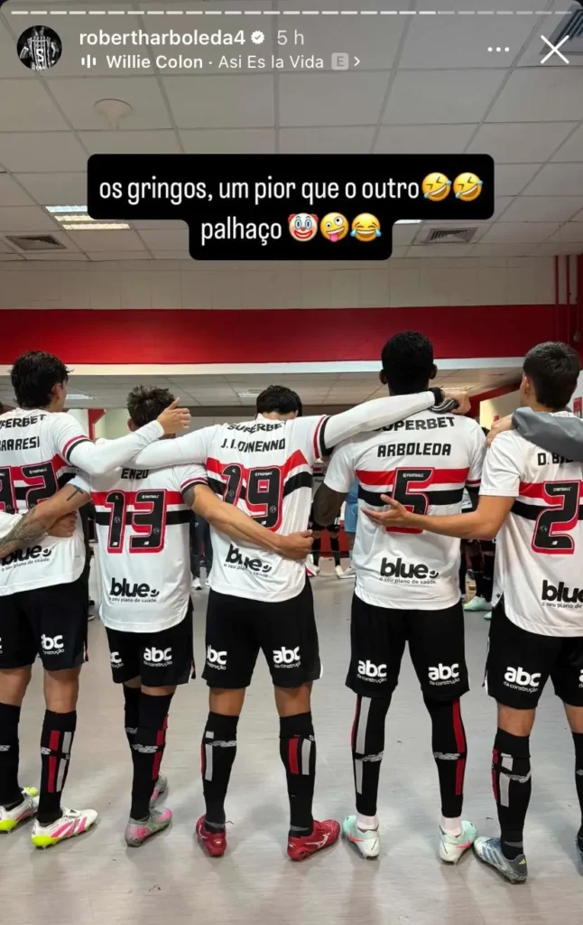 Atualmente, o técnico Hernán Crespo conta com nove jogadores nascidos fora do Brasil, entre eles Arboleda, Alan Franco, Ferraresi, Enzo Díaz, Cédric Soares, Bobadilla, Calleri, Tapia e Dinenno. Em resposta às declarações de Muller, Arboleda não hesitou em usar as redes sociais para defender seus colegas, desafiando a crítica do eterno atleta tricolor. “Os gringos, um pior que o outro. Palhaço”, afirmou em uma postagem, ilustrada por uma foto na qual aparece ao lado de outros jogadores estrangeiros como Enzo Díaz, Ferraresi, Dinenno e Bobadilla.